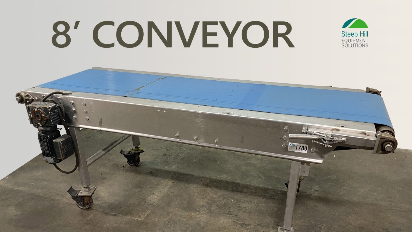 Flat belt conveyor. Belt: 96″L x 24″W Adjustable legs, current work height: 37″ Powered by a Sew Eurodrive 1 hp motor and gear drive. Tested working condition.