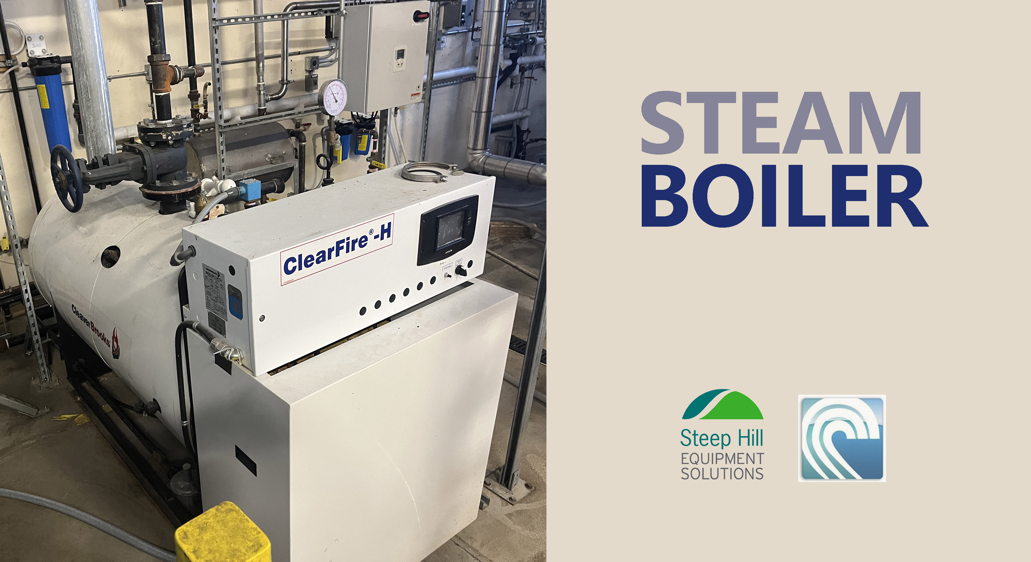 The CleaverBrooks ClearFired-H is a horizontal natural gas-fired steam boiler with a feedwater tank.
