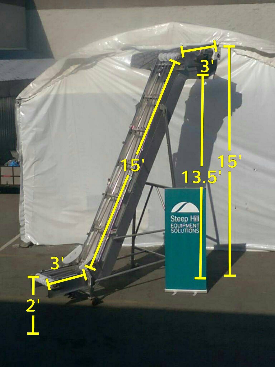 Comes with conveyor belt: 22″ wide, 4″ high cleats, 5.5″ between cleats
