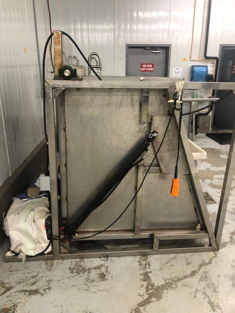 Stainless steel bin/tote dumper New power pack 47″ wide x 53″ base Tested working condition 2109 condition: Good