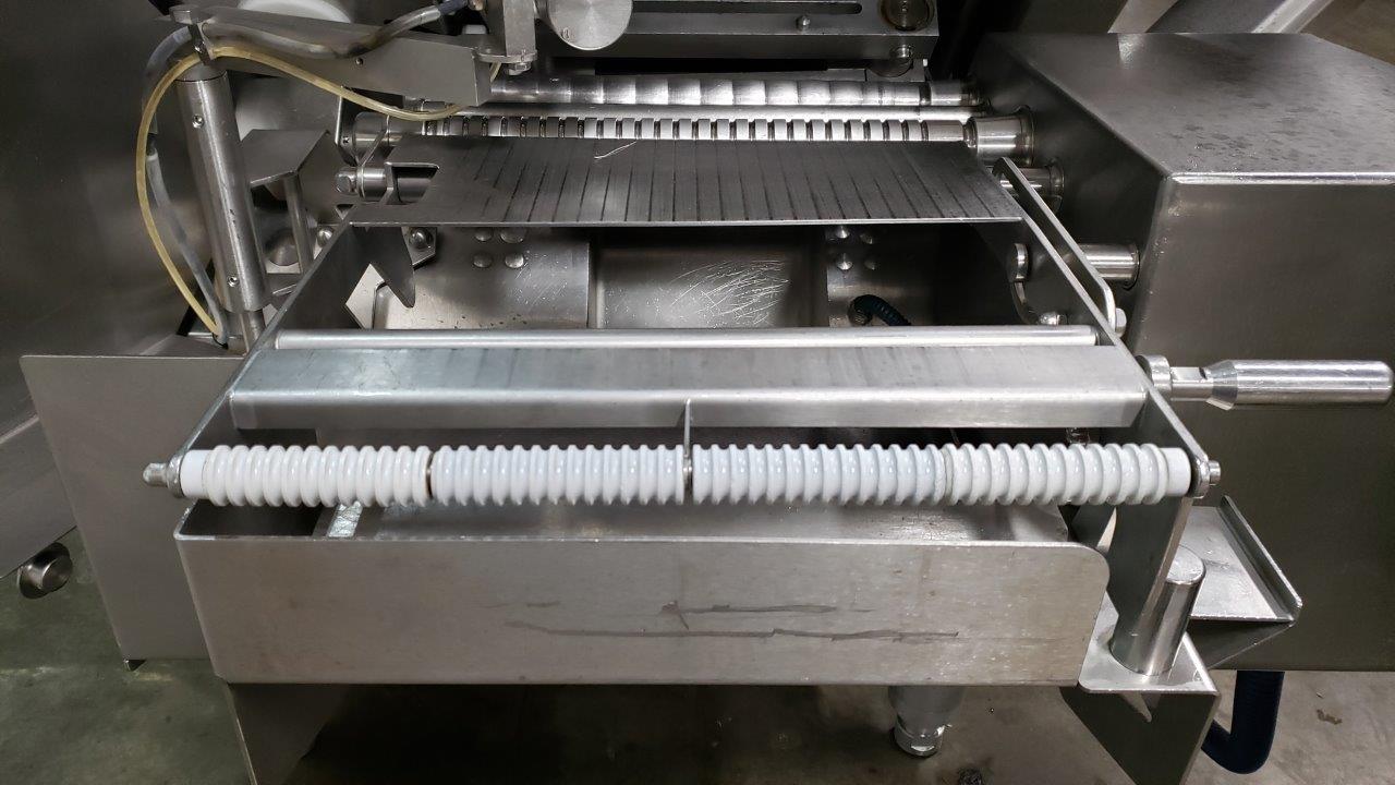 High-performance slicer, great for artisan, deli, snacking, cheese and meat 14″ slice entrance can accommodate multiple products Grippers push meat or cheese logs up against the circular blade for precise parallel cuts. Cuts up to 2,400 slices per minute Comes with infeed and sorting conveyors Manual available