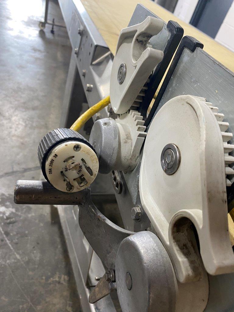 Cutting table: 200″L x 25″W Height from floor: 35½” Needs safety cover and cutting rollers.