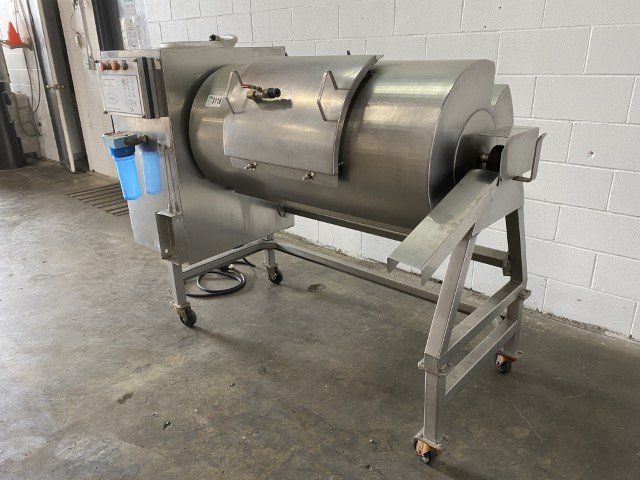 Not only does it tenderize and season food, it enhances food quality and texture too. Marinating capacity: 500 lbs. Inside tumbler: 47″L x 24″ diameter. Manway: 19.75″L x 13″H Tested running condition.