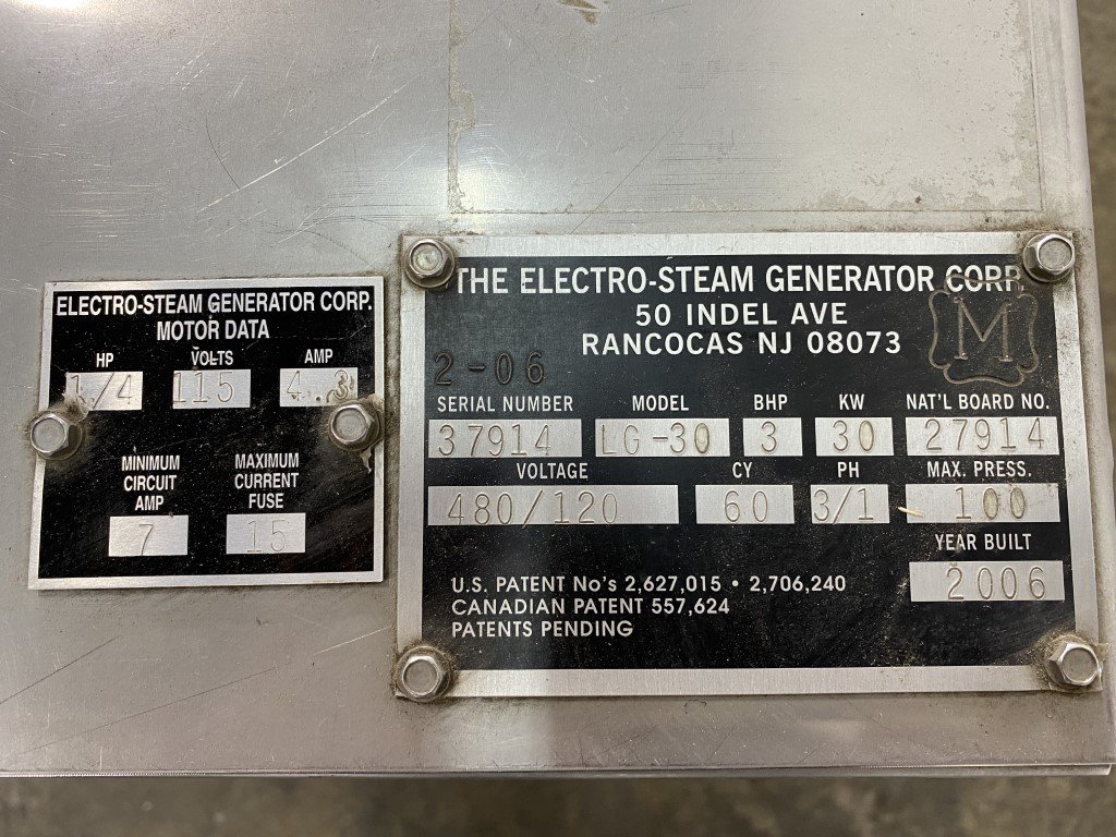 Also called a Little Giant or a steam generator. A high pressure chamber filled with water that is heated by submerged electric heating elements. Includes the following: ASCO Red-Hat II water solenoid valve Emerson 1/4 hp pump & motor Two Barksdale Econ-0-trol pressure actuated switches Steam pressure gauge Max pressure: 100 psi BHP: 3