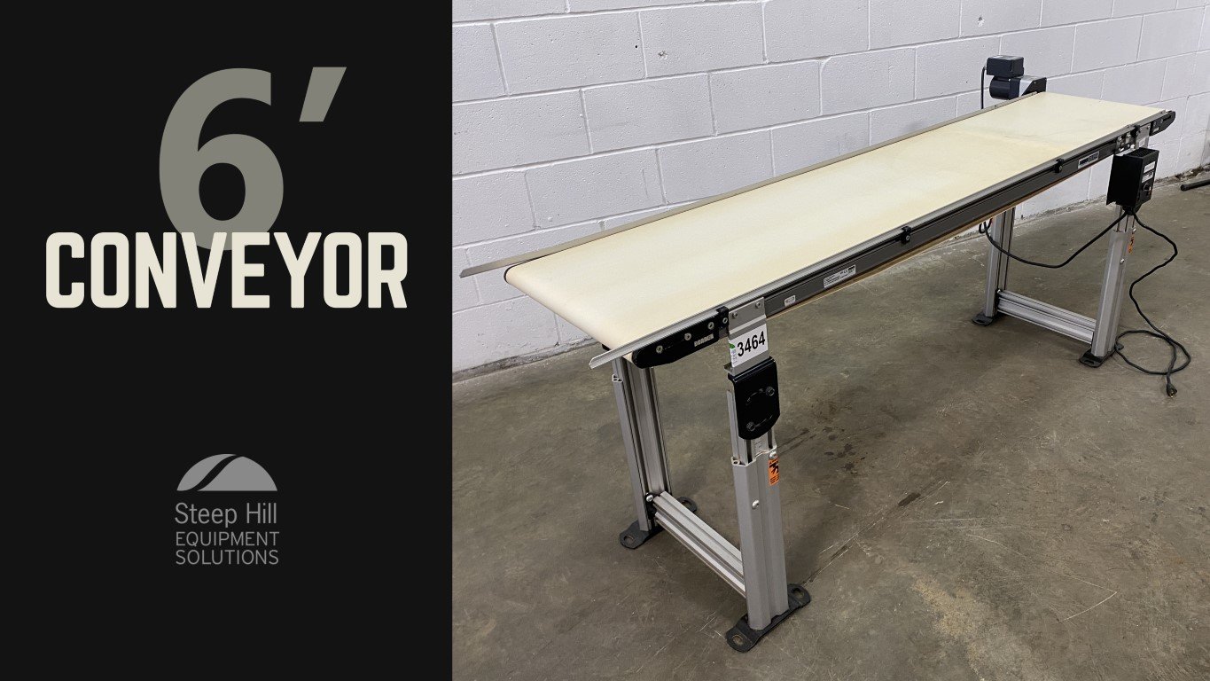 Belt: 6’L x 16″W Work height: 29.25″ Adjustable legs. Conveyor powered by an Orientalmotor gear head parallel shaft. Comes with speed control. Tested working condition.