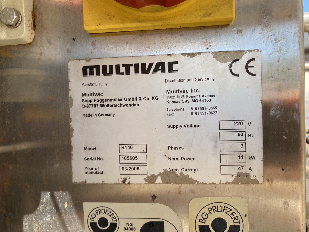 The Multivac R140 is a compact thermoforming system designed to form, fill, and seal packages directly from roll stock. With a 12.5″ (320 mm) web width and a 10.25″ (260 mm) index supported by two sets of dividers, this unit provides consistent, efficient packaging performance. The system includes multiple accessories and components that enhance labeling, coding, trimming, and overall production capability. Condition is good, with various extra parts included.