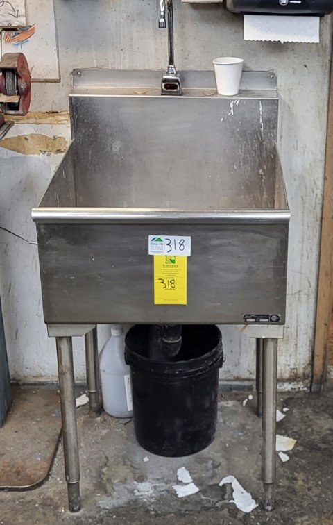 Lot 91 SS single basin sink with faucet. Make: EFI Sales Model: SE1C18X18-8 Basin: 17″L x 17″W x 11″D OA dimensions: 24″L x 24″W x 47″H, 40 lbs Lot 133 Deep basin SS sink with faucet and shelf. Basin: 58.75″L x 25.75″W x 16″D OA dimensions: 92″L x 30″W x 44″H, 200 lbs Lot 156 SS sink with two faucets. Basin: 69″L x 18″W x 12″D OA dimensions: 72″L x 22″W x 58″W, 200 lbs Lot 256 Double SS sinks with faucets. Each basin: 16″L x 19.5″W x 17.4 D OA dimensions: 41″L x 21″W x 53″H, 60 lbs Lot 286 SS sink with faucet. Make: EFI Sales Model: SI818-1NC Basin: 17″L x 18″W x 11″D OA dimensions: 24″L x 24″W x 44″H, 50 lbs Lot 318 SS shop sink with faucet. Basin: 24″L x 22″W x 12″D OA dimensions: 27″L x 24″W x 55″H, 50 lbs
