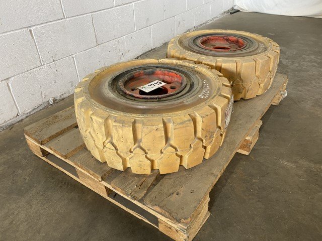 Two (2) NEW forklift tires. The high-grade rubber has excellent wear properties, superior traction and resilience. Tire size: 23 x 9-10 OA: 23″ diameter x 8″ wide Rim size: 6.5 1-10