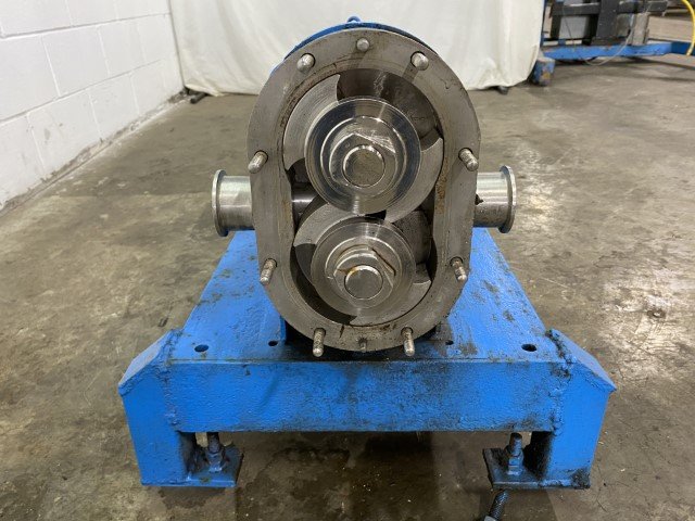 Stainless steel positive displacement lobe-type pump. Ports: 1.5″ diameter, with flange: 2″ Rated for maximum capacity 30 GPM @ 1740 RPM. Powered by a Sterling Electric 30 hp motor and SEW Eurodrive helical gear motor. Tested working condition.