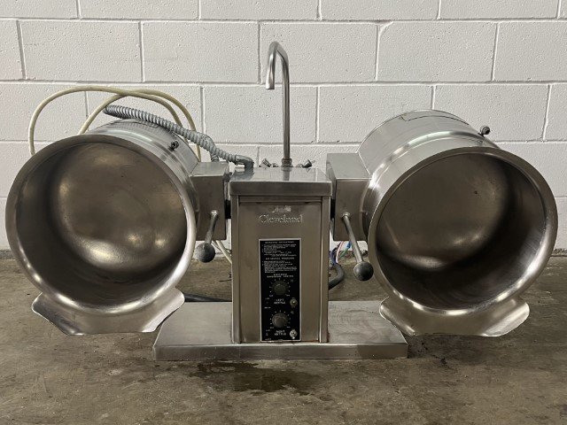 Twin-style, electric, tabletop, self-contained, 2/3 steam jacketed, manual tilt, stainless steel kettles with large pouring lips for high capacity and chunky products. Comes with a swing-spout water faucet Each kettle – inside: 13″ diameter x 12″ deep, volume: 6 gallons Steam jacket filled with treated water, venting or refilling not required. MAWP: 50 psi at 298°F Min Metal Temp: 33°F at 50 psi CRN 04834.5