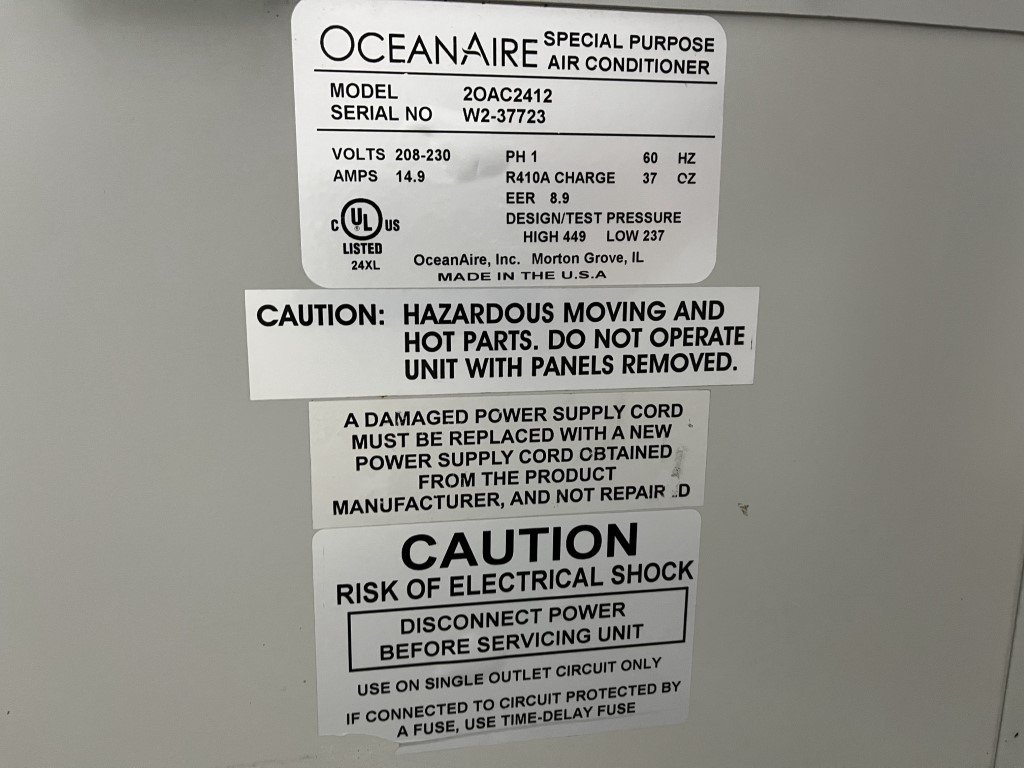 Air-cooled portable air conditioner, or ‘spot cooler’ range, designed for temporary cooling applications. Cooling capacity: 24,020 BTUH at 80°DB / 67°WB return air, 95°F outdoor at high fan speed. Cooling ambient operating range: 65° to 105°. EER: 8.9 Refrigerant charge: R410A Design/test pressure: high 449, low 237