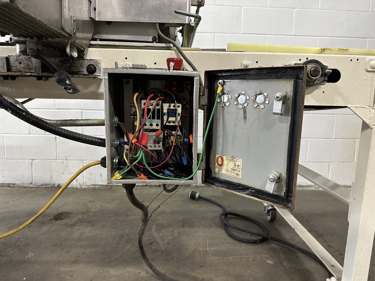 The LeMatic BF-10 is a modular roll slicing system designed for slicing flatbreads such as pita and thintini buns. A horizontal band blade slices each piece cleanly as it moves through on the conveyor.