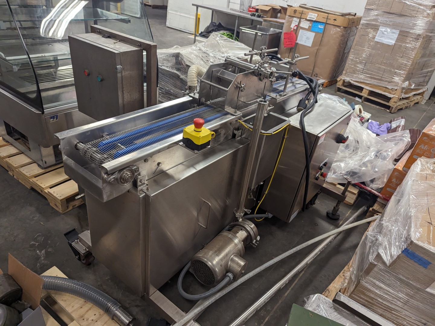 Engineered for precise liquid smoke application, this custom coating unit delivers consistent coverage while minimizing waste through a closed-loop recirculation system.