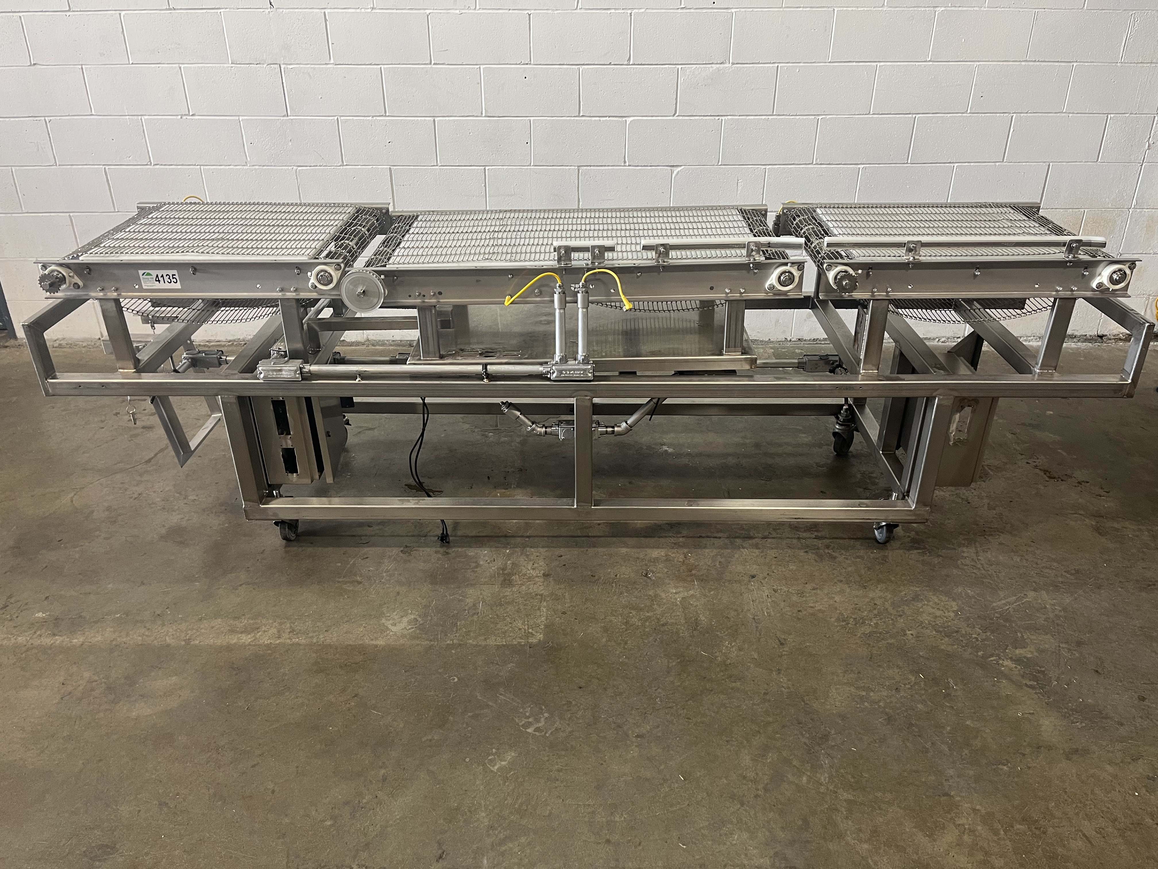 The 3-section wire belt, or wire mesh belt, conveyor is highly versatile for various applications. Its conveying surface offers free air-flow or water drainage and is easy-to-clean and sanitize.