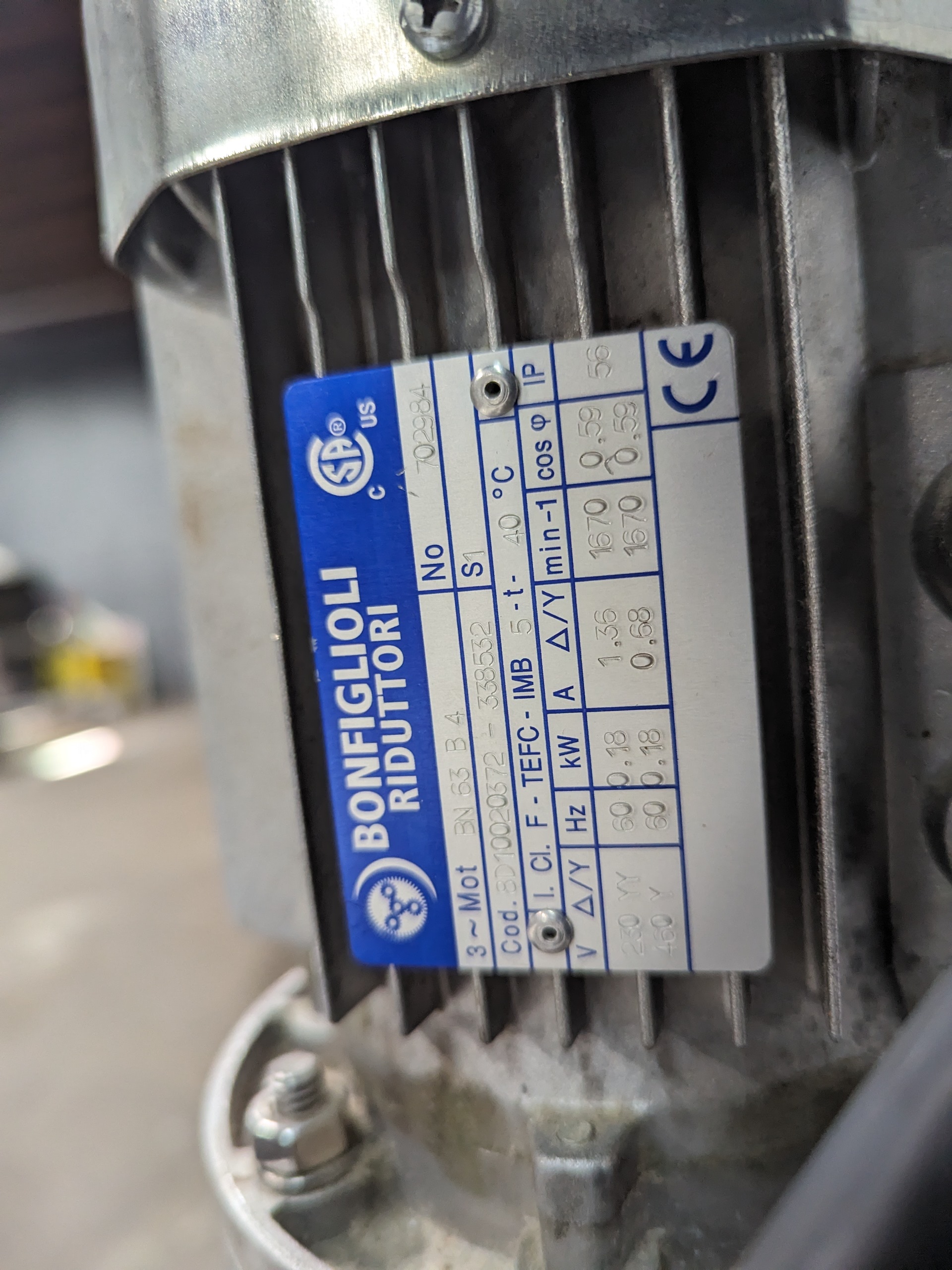 - Powered by Bonfiglioli Riduttori 0.18kW (0.25 HP), 230/460V motor