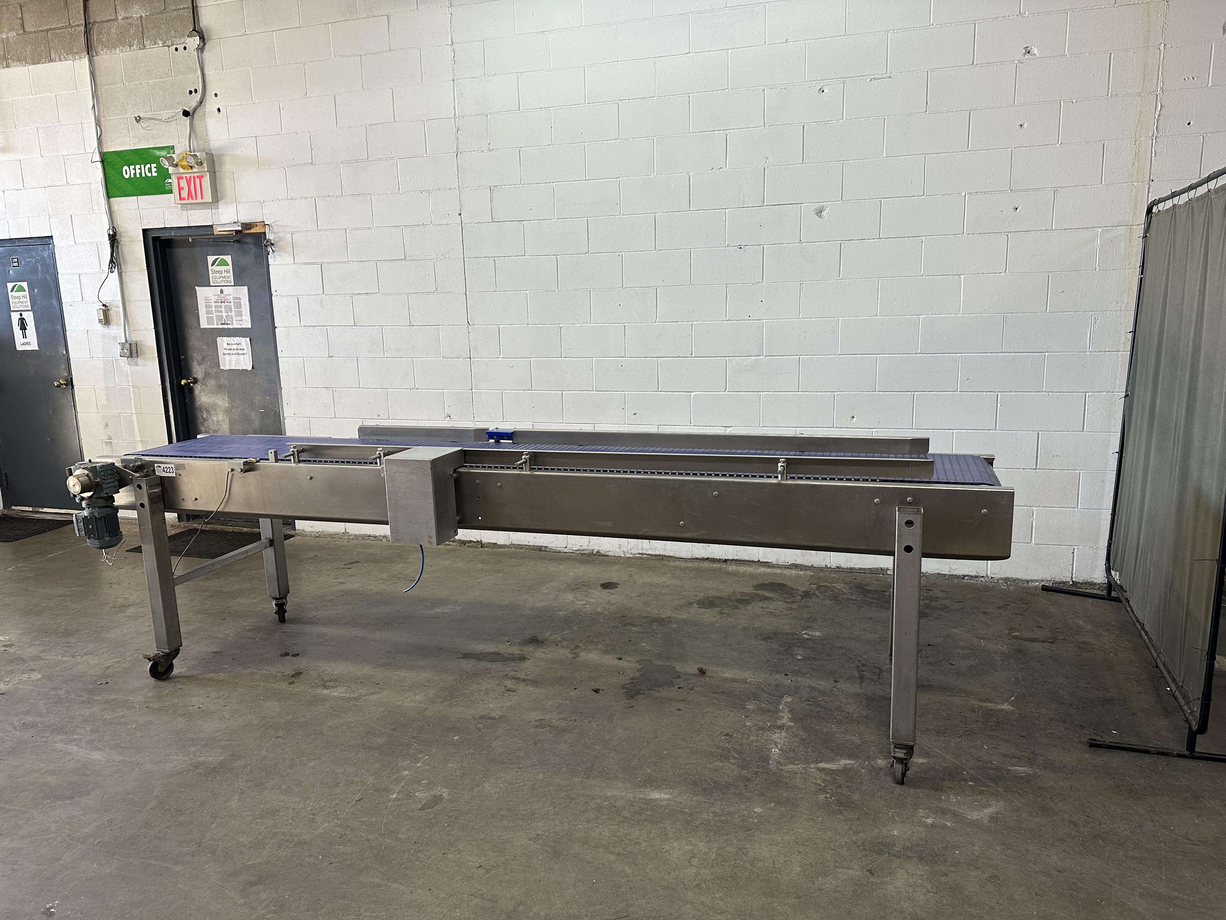 Belt: 144″L x 20″W Adjustable guide rails Powered by Sew-Eurodrive motor