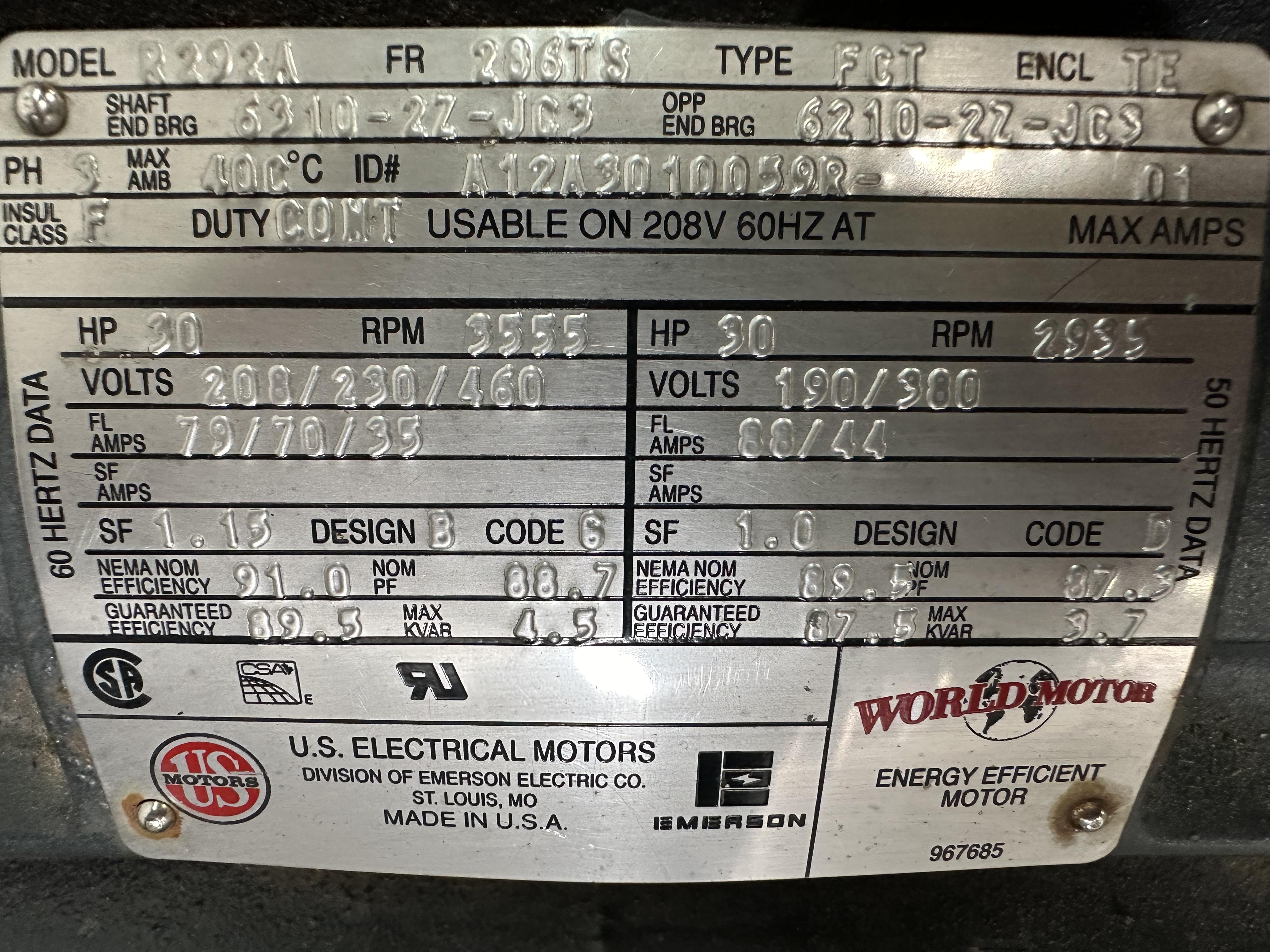 | Power | 30 HP | 3555 RPM | 208-230/460V |