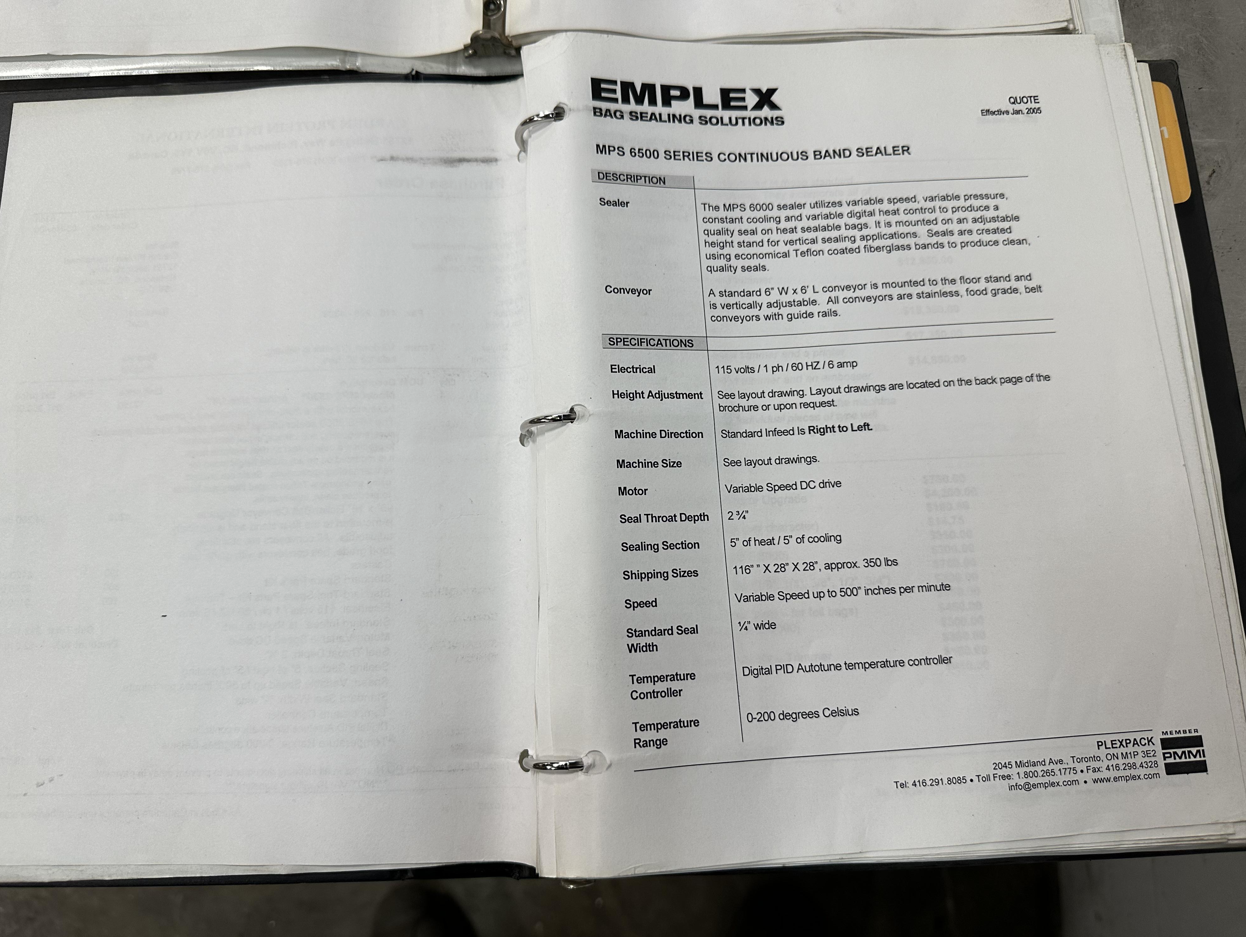 The Emplex MPS 6000 bag sealer utilizes variable speed, variable pressure, constant cooling, and variable digital heat control to produce a quality seal on heat sealable bags. It is mounted on an adjustable height stand for vertical sealing applications. Seals are created using economical Teflon coated fiberglass bands to produce clean, quality seals.
