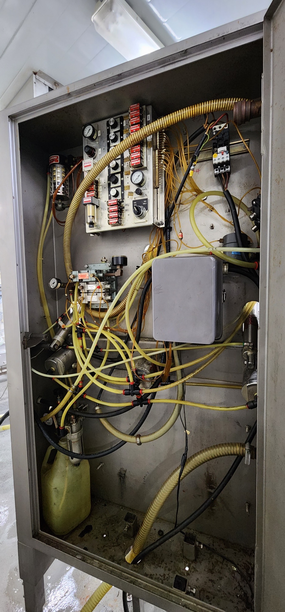 Stainless steel gas flushing/vacuum machine for bulk packaging. Comes with a gas storage tank.