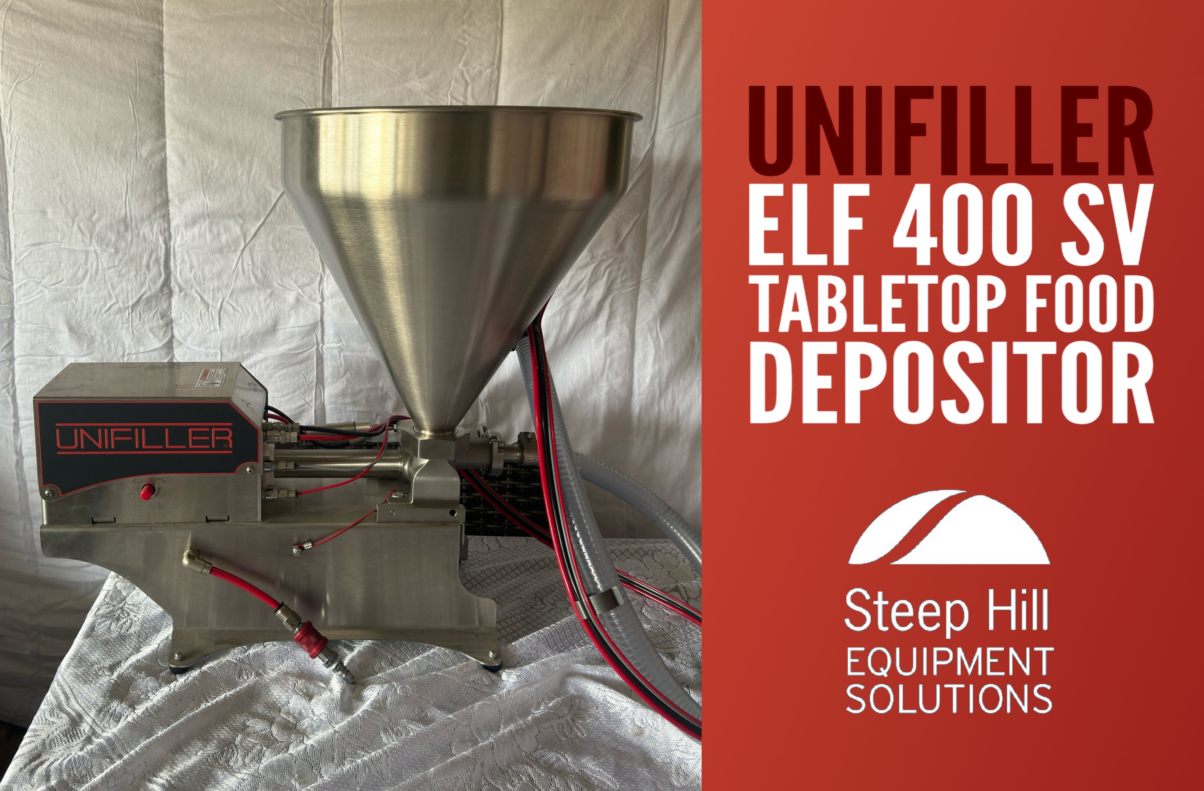 The Unifiller Elf 400 SV depositing systems are flexible, handy table-top models for depositing volumes of up to 420 ml and for processing products with soft pieces of up to 19 mm.